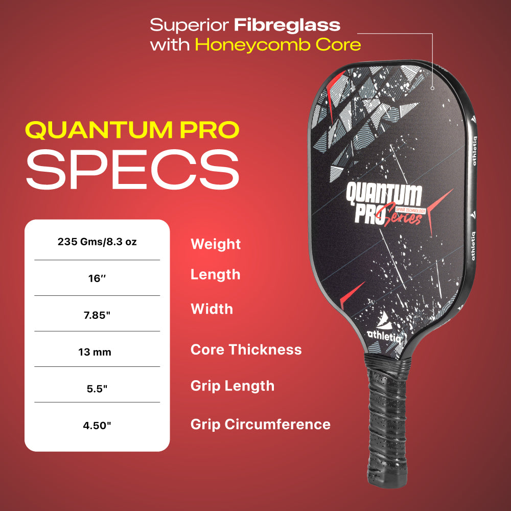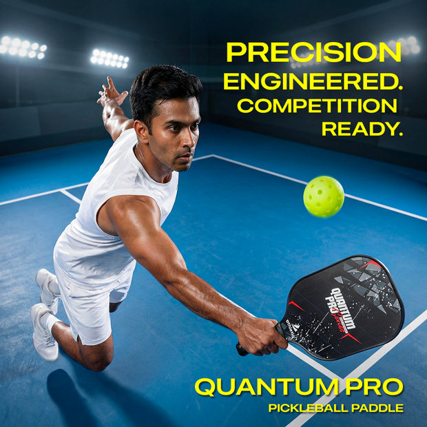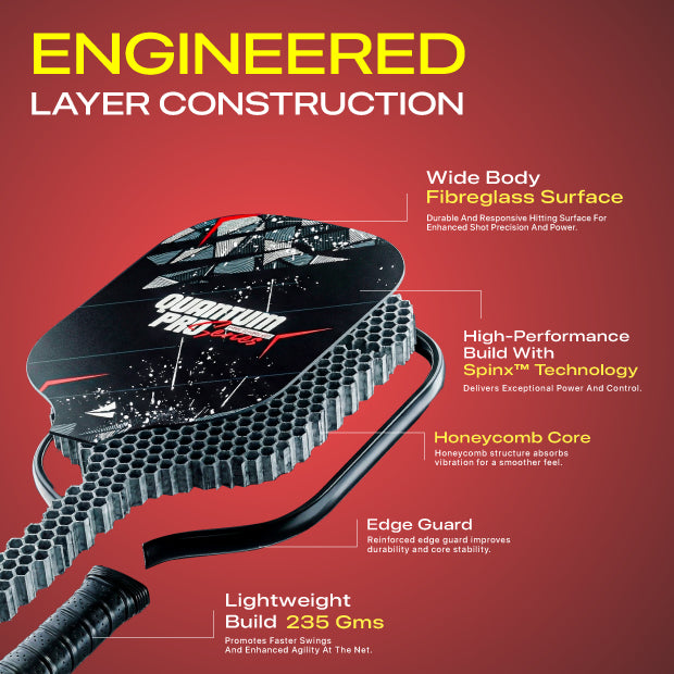 Built for beginners stepping into the game, the QuantumPro paddle with 13mm core is designed to offer easy control, power, and consistency. The paddle’s broad fibreglass face with SpinX™️ technology delivers reliable spin and smooth performance right from your first session.