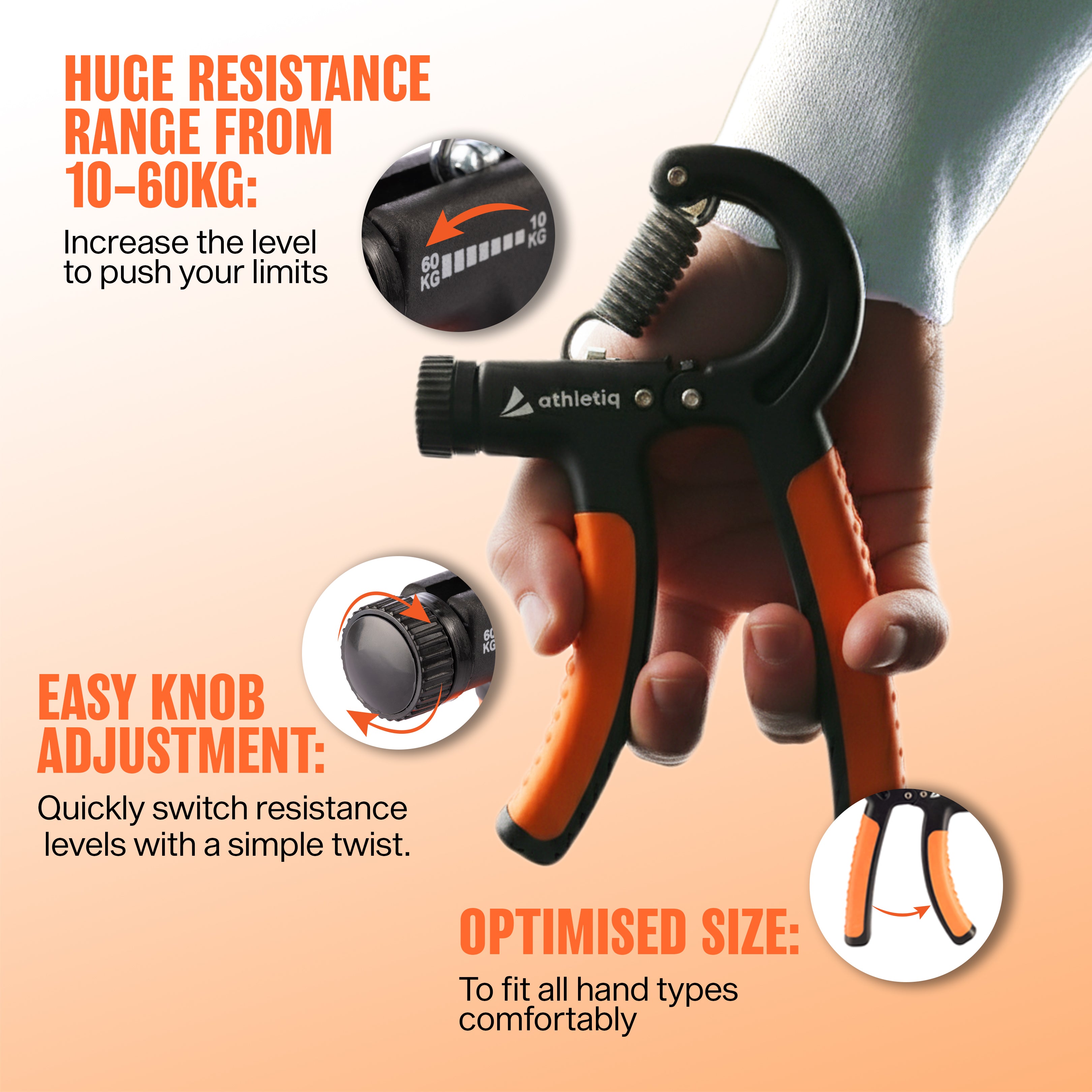 Athletiq Hand Grip is perfect for users wanting to up their hand and arm strength game. Whether you exercise at home or hit the gym, this hand grip forms an essential part of your fitness routine.