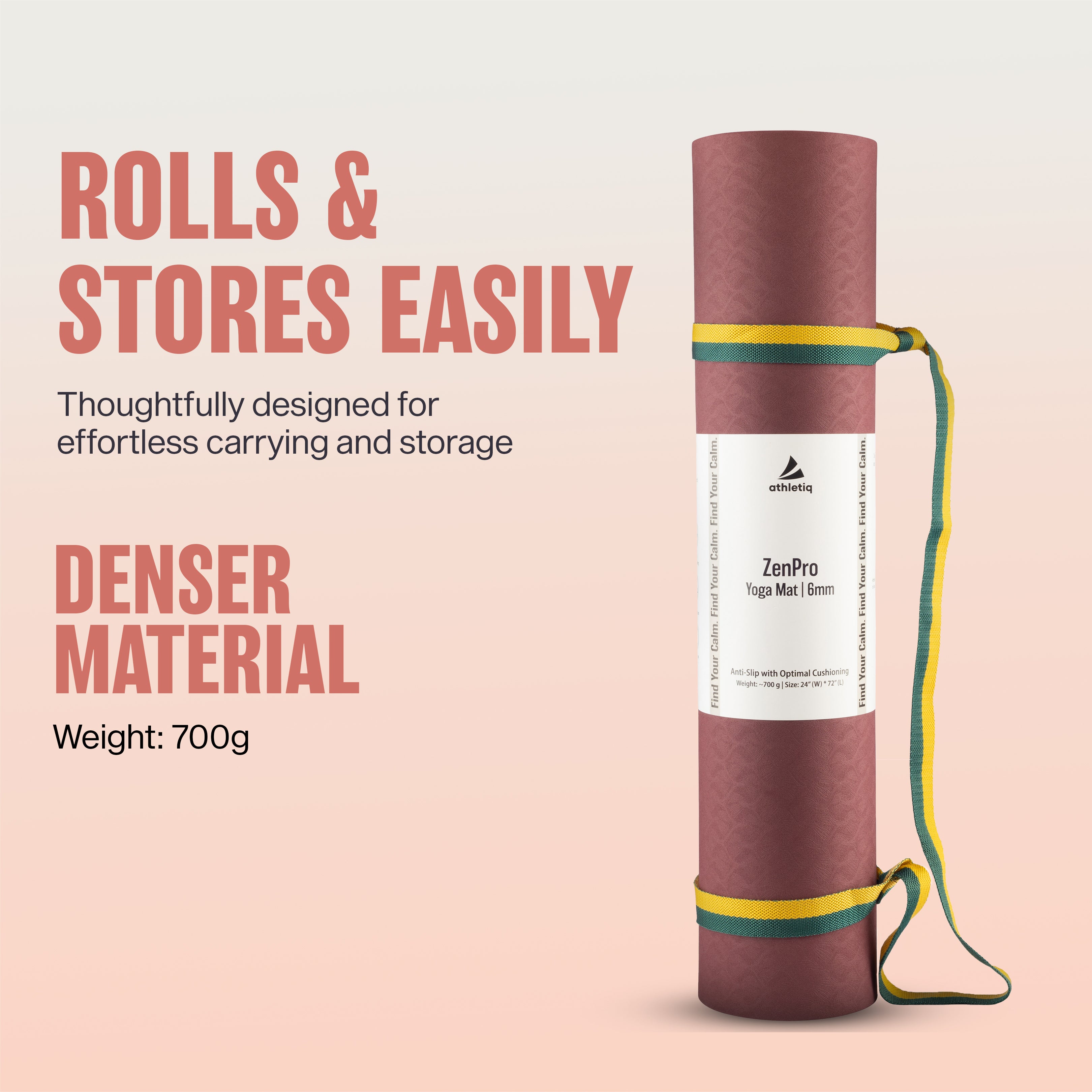 Athletiq ZenPro Yoga Mat (Brown) – With Free Carry Strap