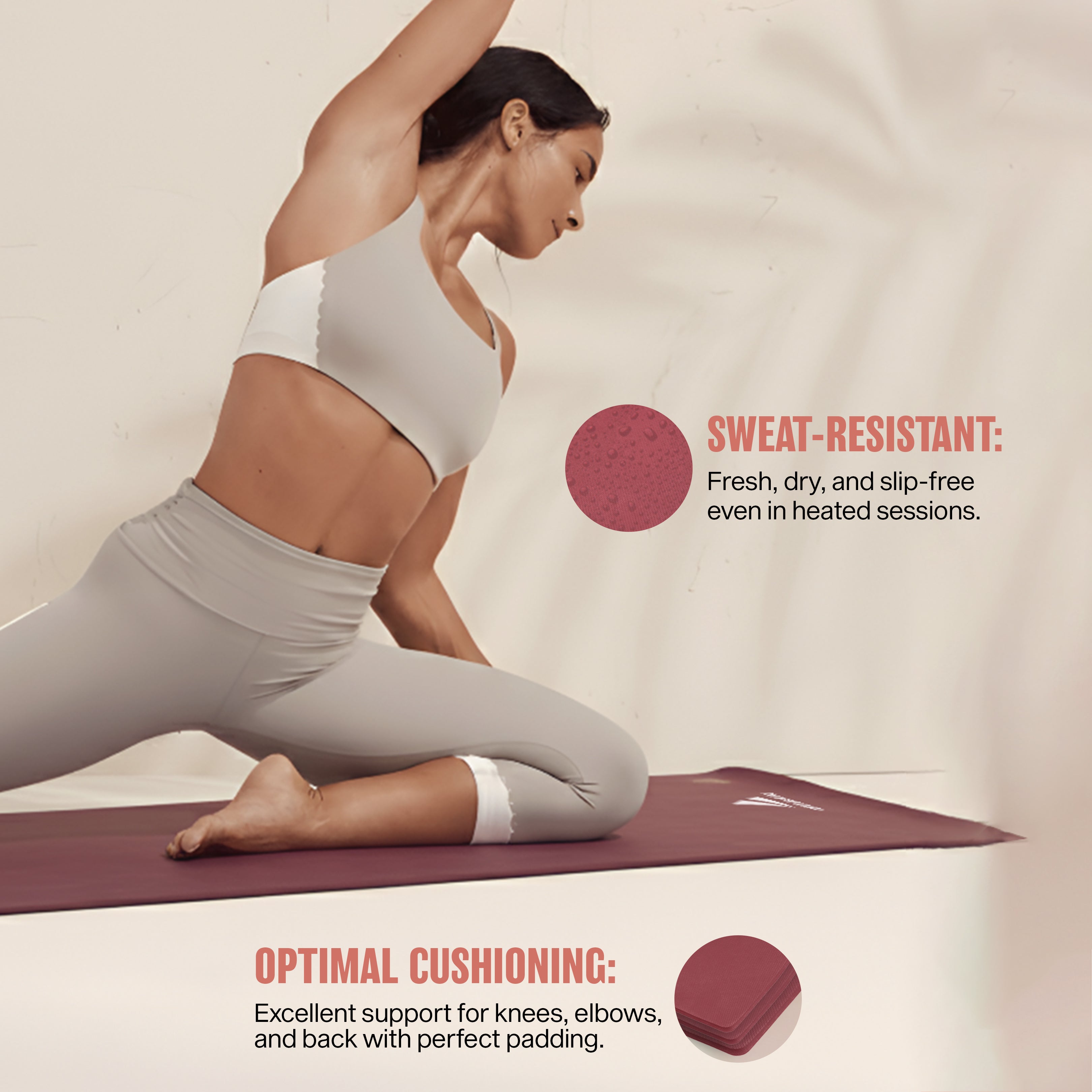 Designed and built with TPE material having 6 mm thickness to give pro-level grip during your yoga and workout sessions, protect your joints, and stay in place with a dual-sided textured surface for versatile use.
